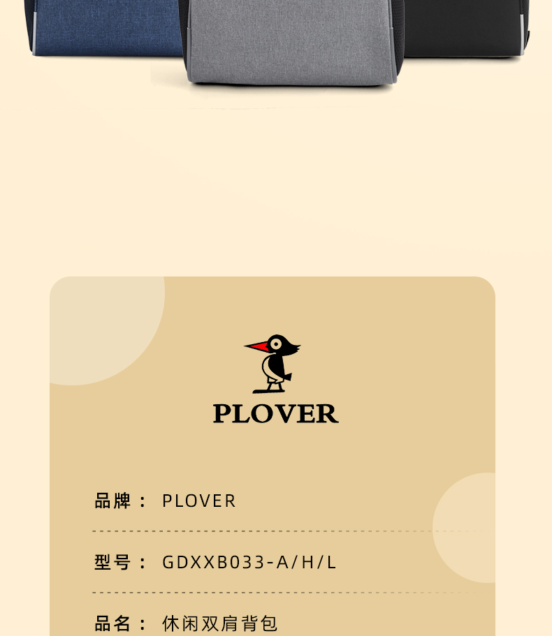 • PLOVER香港啄木鸟时尚韩版休闲背包 GDXXB033