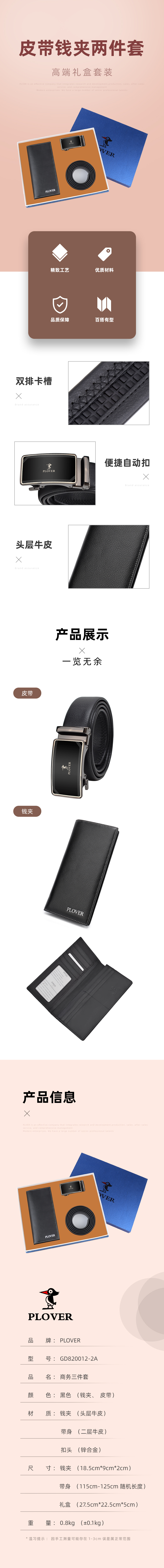 PLOVER香港啄木鸟长夹钱夹皮带套装礼盒 GD820012-2A