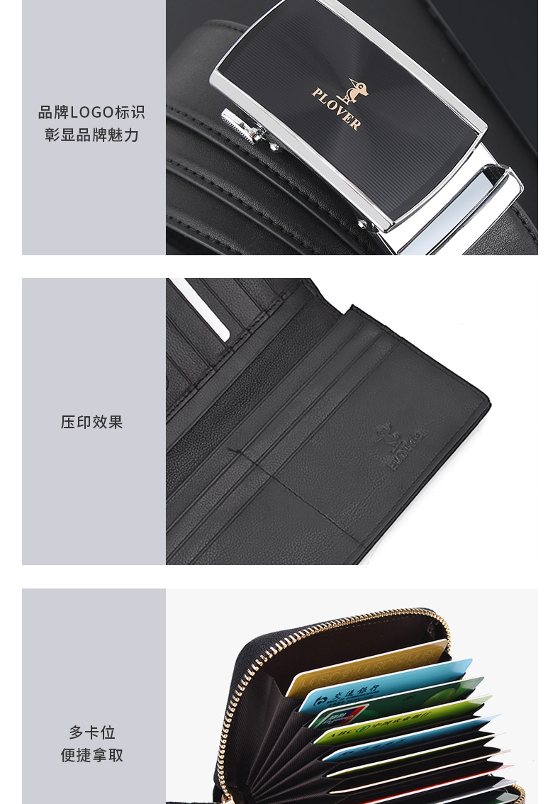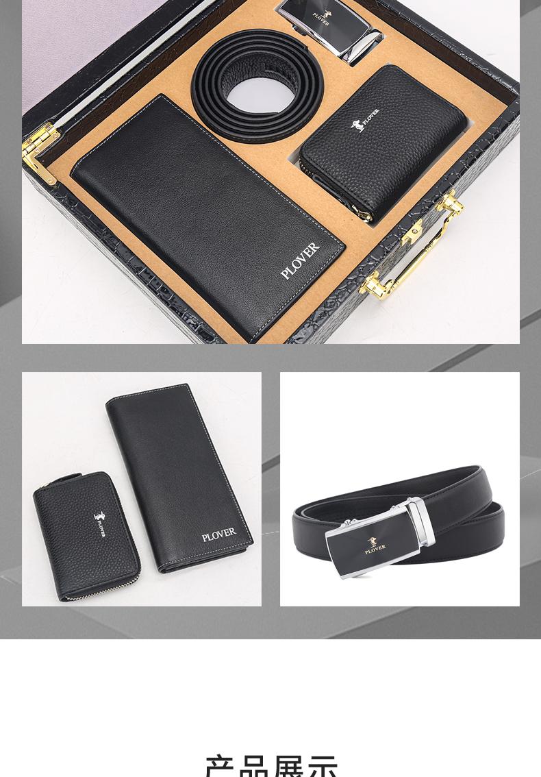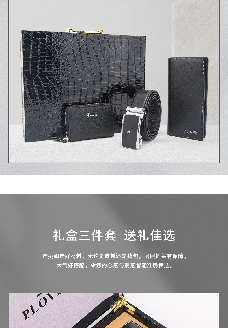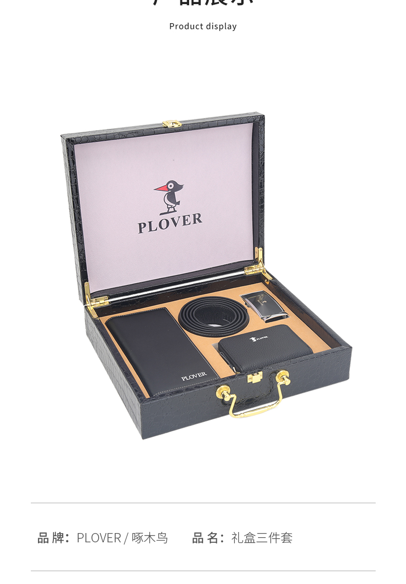 • PLOVER香港啄木鸟高端头层牛皮钱包卡包皮带三件套礼盒 GD820046-3G