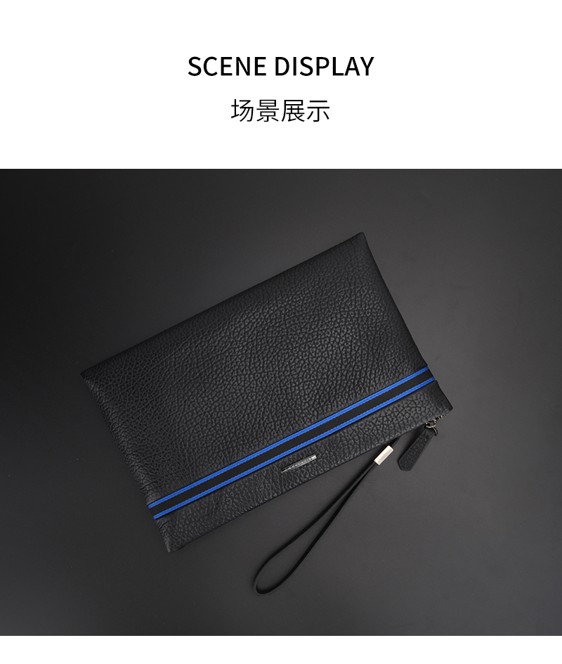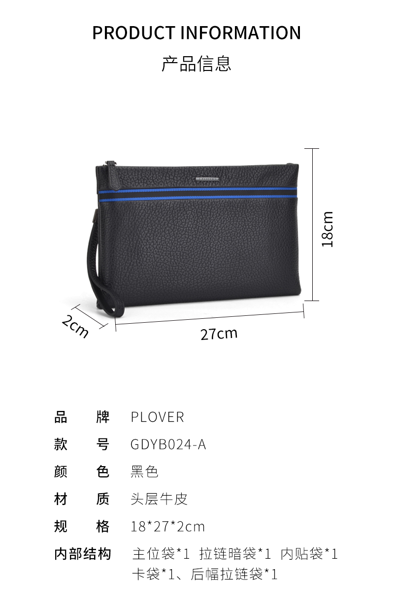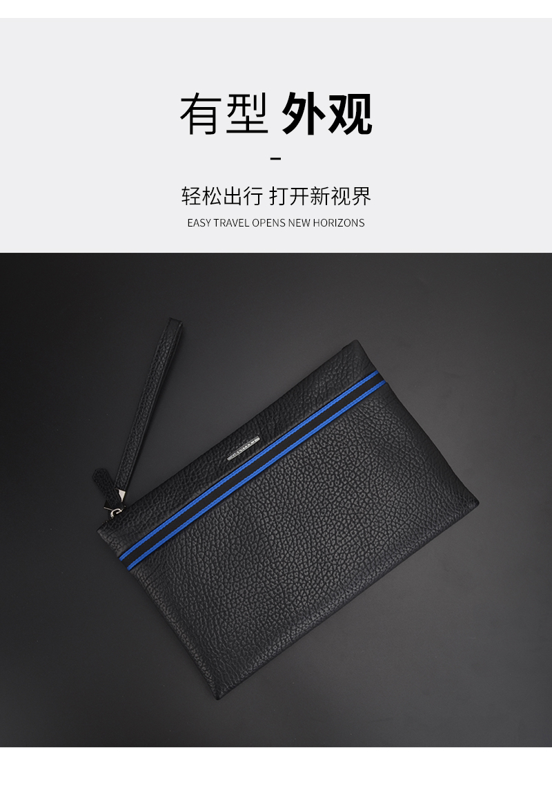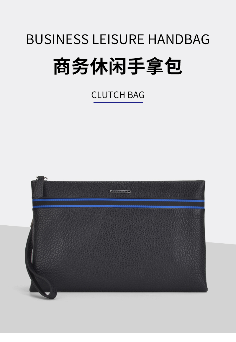 • PLOVER香港啄木鸟蓝条织带牛皮夹包 GDYB024-A