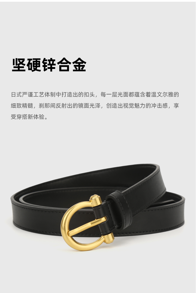 本品采用精选合金扣头,色泽柔美,优雅耐看,柔软的牛剖层带身,手感好,韧性强,耐拉耐磨不变形,是一款颜值与品质共存的经典版型,配有精美礼品盒,更显产品的档次和内涵。