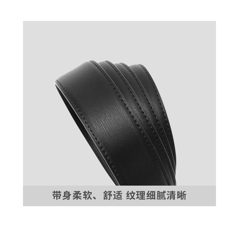 带身面皮采用“耐刮耐磨”擦的柔软平细牙签纹二层皮, 外观细密柔软!搭配锌合金扣头,带身两边油边设计,走线工整,无缝连接、构想更增添立体感!款式简洁,高端大气有档次!