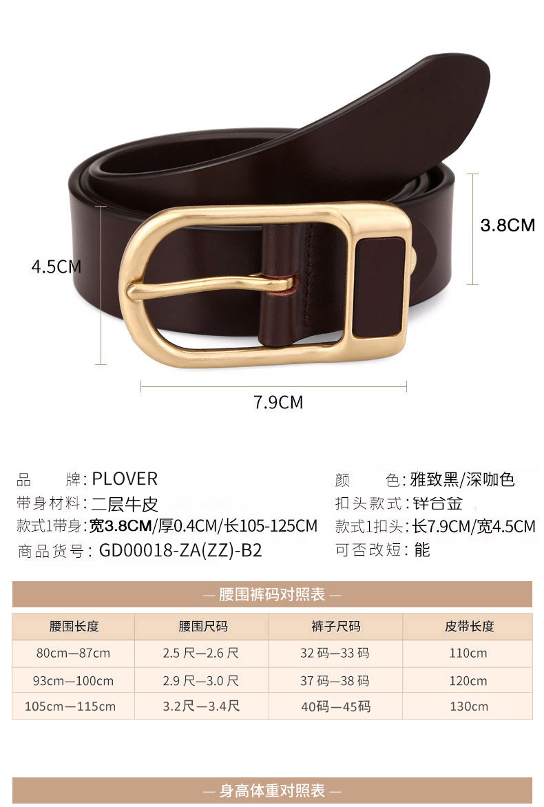 PLOVER香港啄木鸟真皮腰带男士针扣皮带GD00018-ZA-B2/GD00018-ZZ-B2