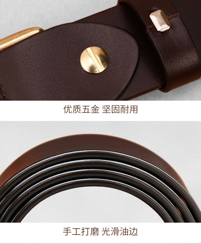 时尚简约款,带子采用质感牛皮,底面选择撞色搭配/黑配啡.扣头采用锌合金真空电镀工艺,休闲质感,有型有款,佩戴在腰间瞬间有一种温文尔雅的气质。 颜值与实用性并存的皮带值得大家选购。一般有孔的是针扣形式,可以根据穿着自由搭配。在休闲风格之下,皮带有了更多的随意别法,常常会有意想不到的效果。