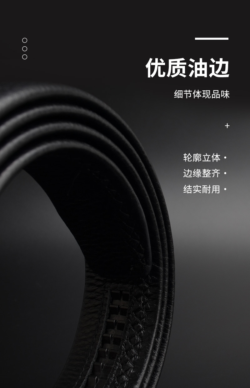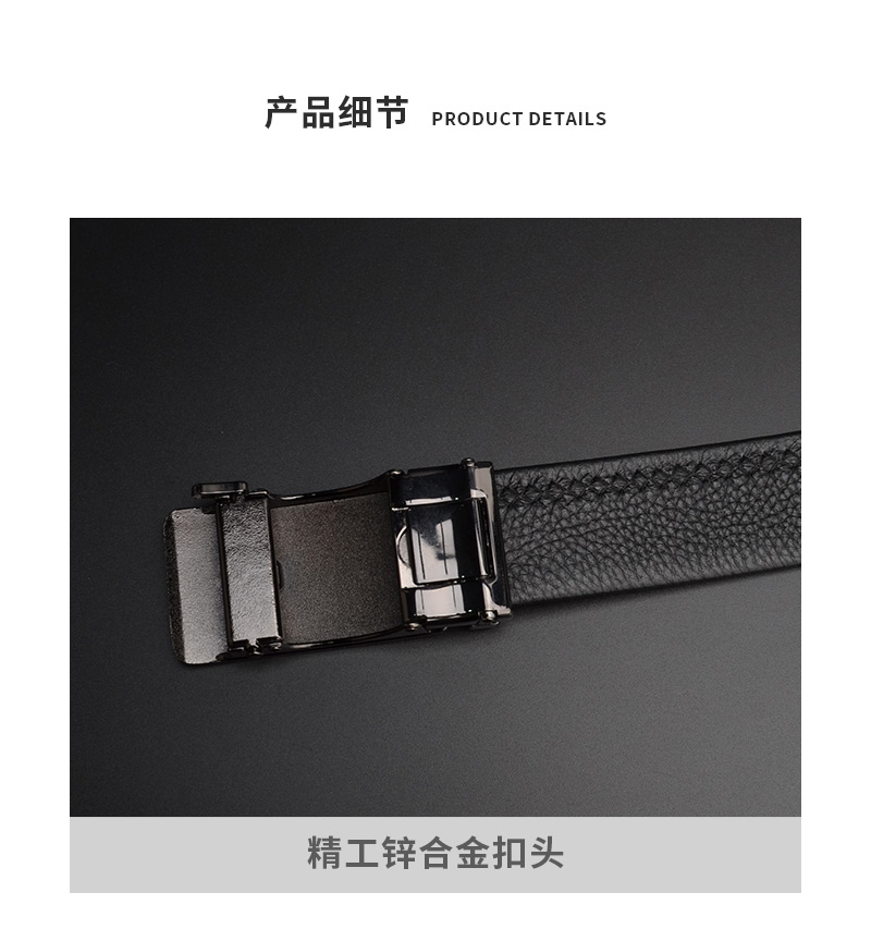 本品采用金属质感好、抗氧化、坚固耐用、不易断裂、经典耐看的高端合金材质扣头,电镀时尚浅金色品牌标志、手感细腻,质感舒适、荔枝纹路清晰的牛皮带身配套搭配,美观协调,尾部还有压印品牌logo,更显高端,精美礼盒包装