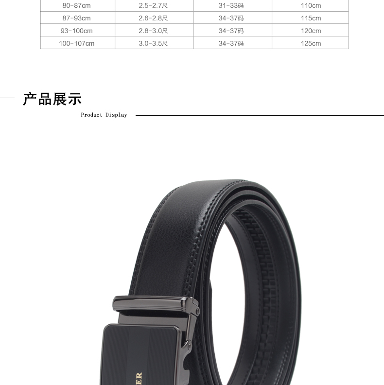 锌合金五金扣头,真空电镀工艺靓丽如镜面,激光雕刻纹理+贴标品牌LOGO,带身采用二层牛皮,耐变形夹层保证皮带在使用中不易变形,封边采用车线+油边工艺,带身尾部采用热压印LOGO工艺