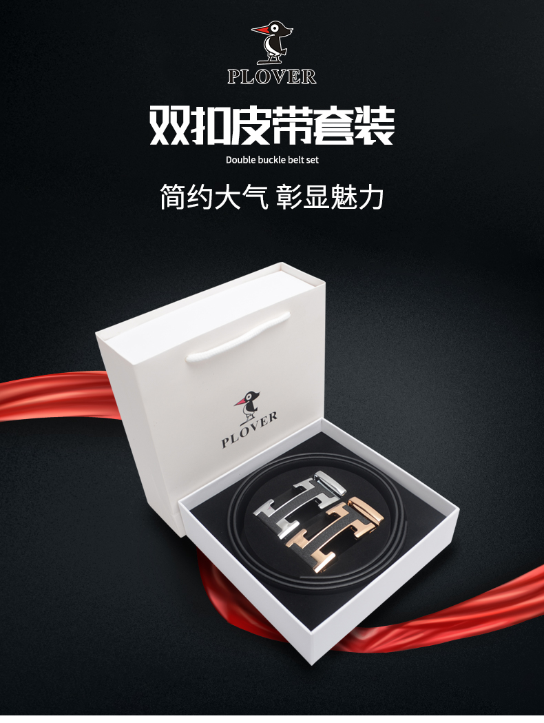 • PLOVER香港啄木鸟男士真皮皮带套装双扣腰带礼盒GD43AK38K39-DA-B18