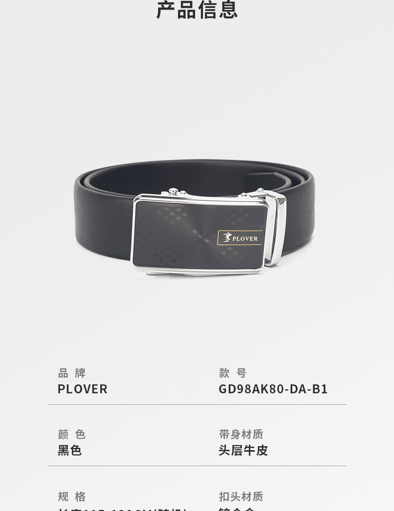 PLOVER香港啄木鸟真皮腰带头层牛皮皮带GD98AK80-DA-B1