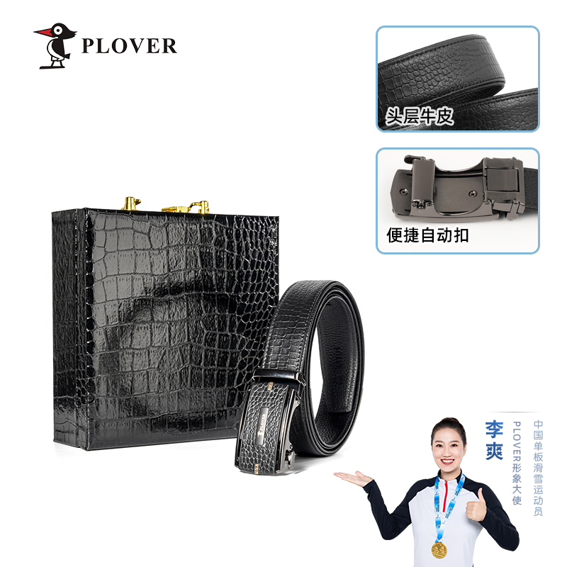 PLOVER香港啄木鸟高端头层牛皮蜥蜴纹皮带真皮腰带礼盒GD00006-DA-G1