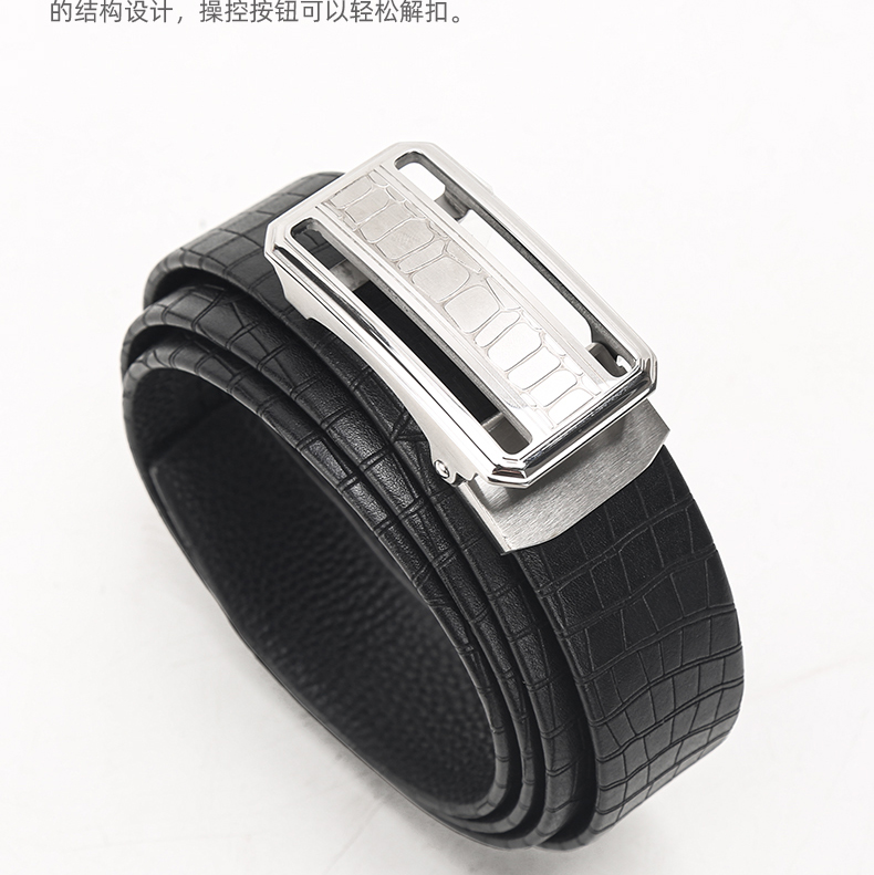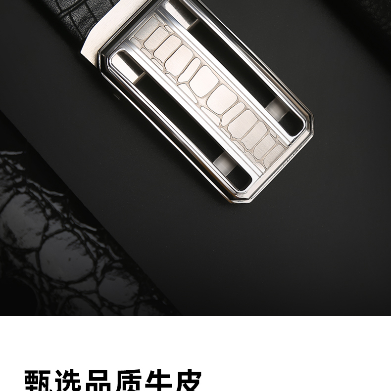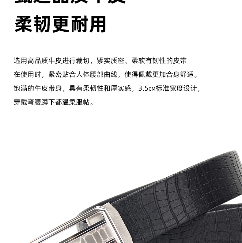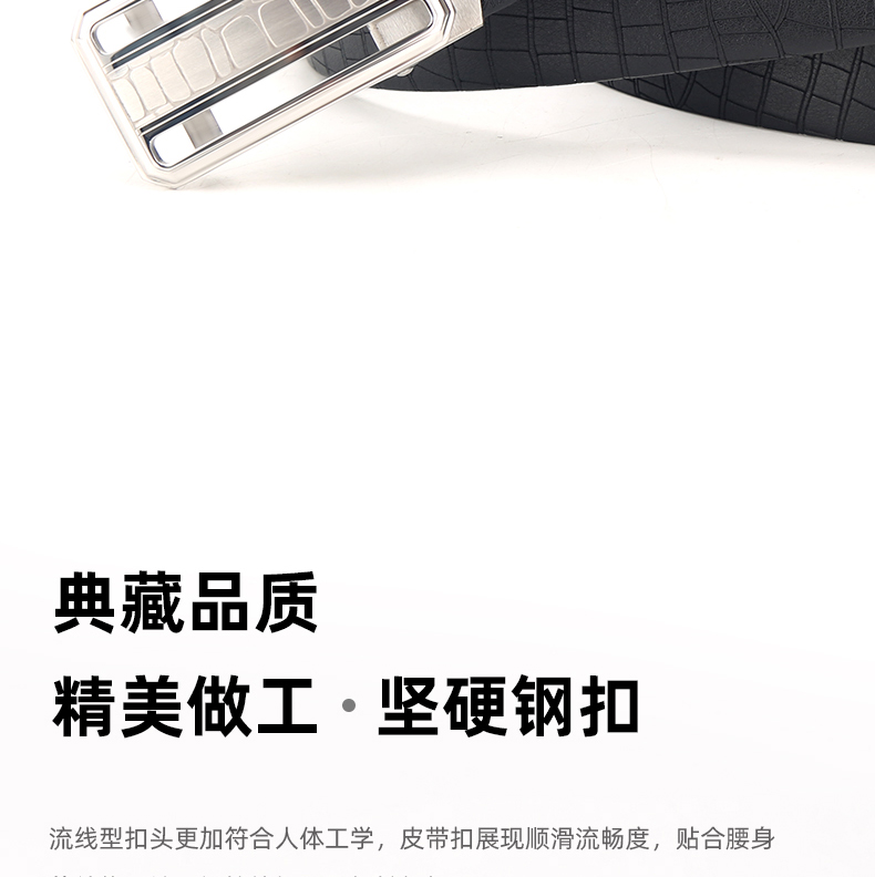 设计新颖,钢扣自动扣,带身正面来用头层软牛皮,激光小鳄鱼纹,无缝无线做法,显档次,-“带”腰间,爱不释手