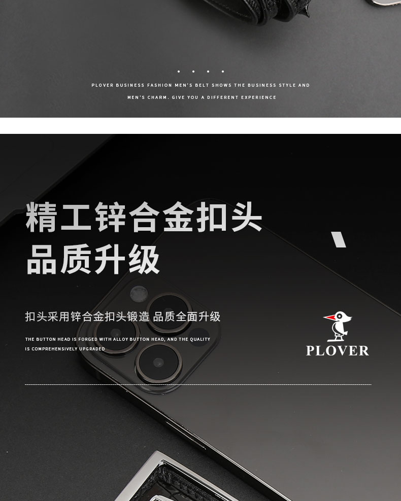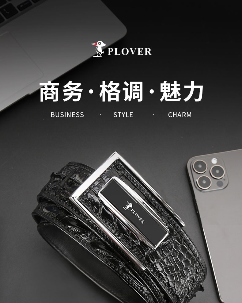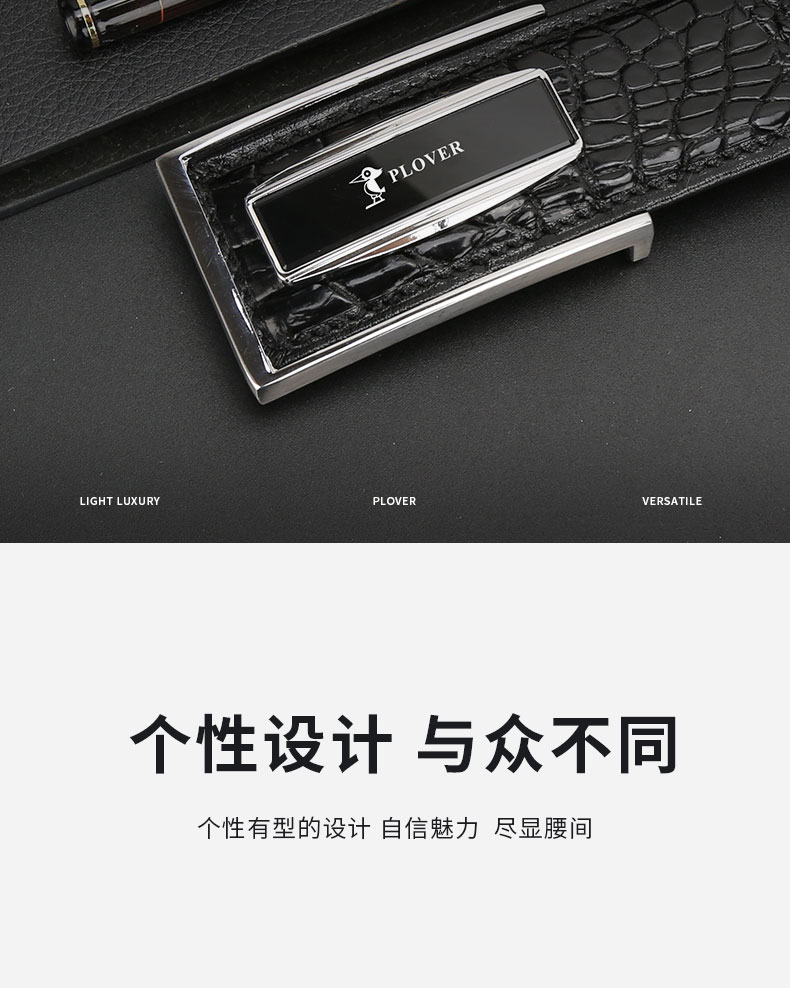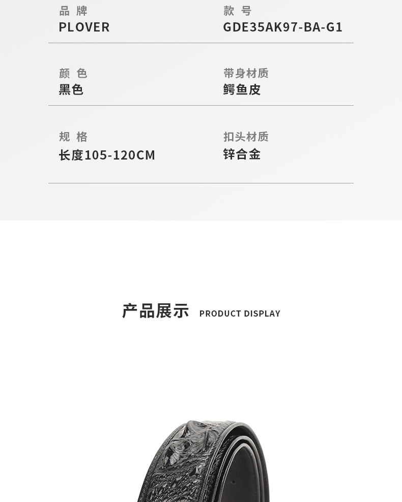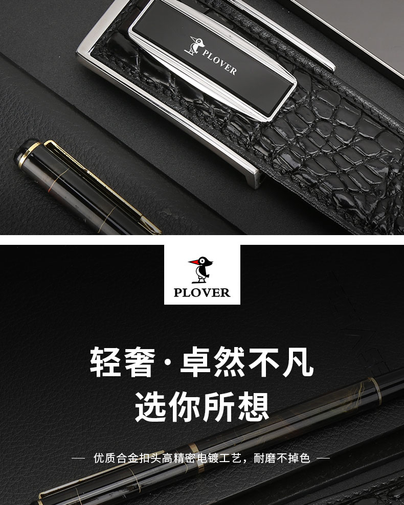 本产品带身面皮采用真鳄鱼背骨皮,此皮面磅礴大气,纹理自然饱满,抗拉伸不易变形;底是皮质柔软,耐磨性强的头层平纹皮,此带身手感细腻,质感舒适,再搭配防刮耐磨、耐腐蚀、耐高温、抗氧化、不易刮花、坚固耐用的仿钢扣头,及传统和现货相结合的做工、鳄鱼纹高端皮盒,使本产品突显高大上。