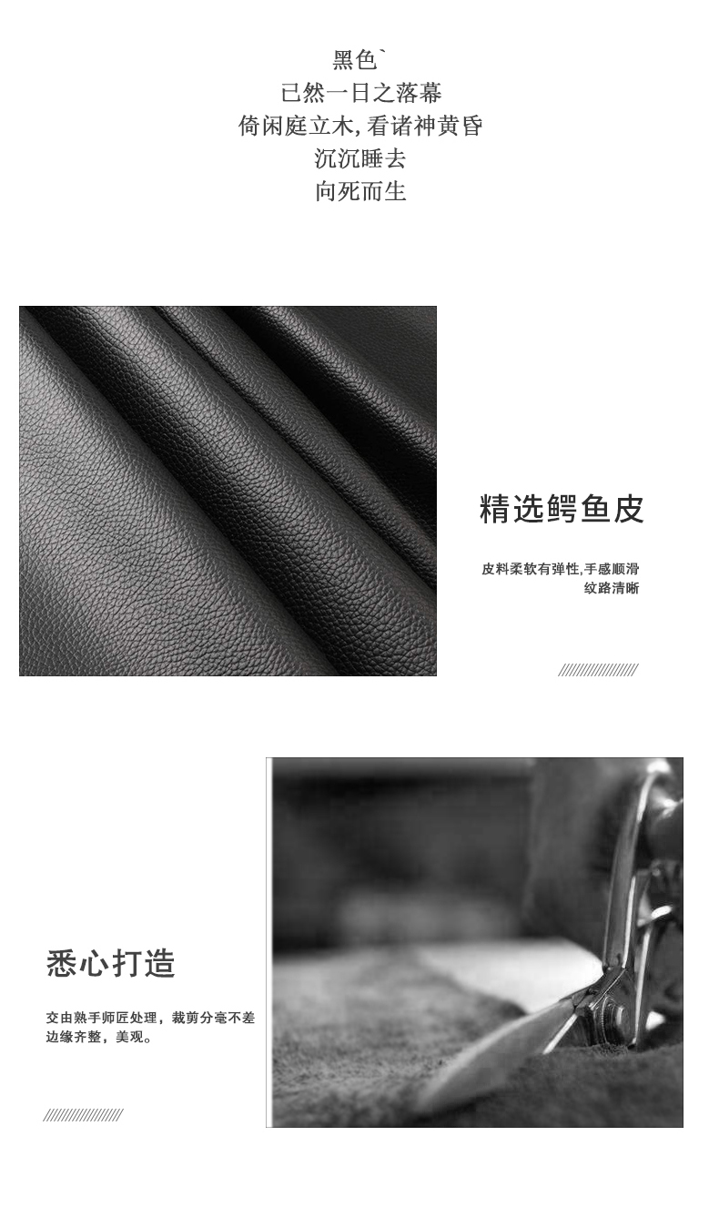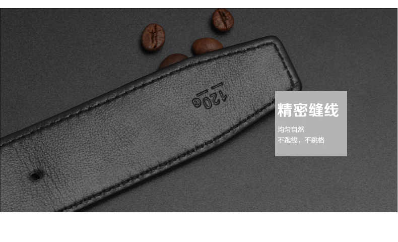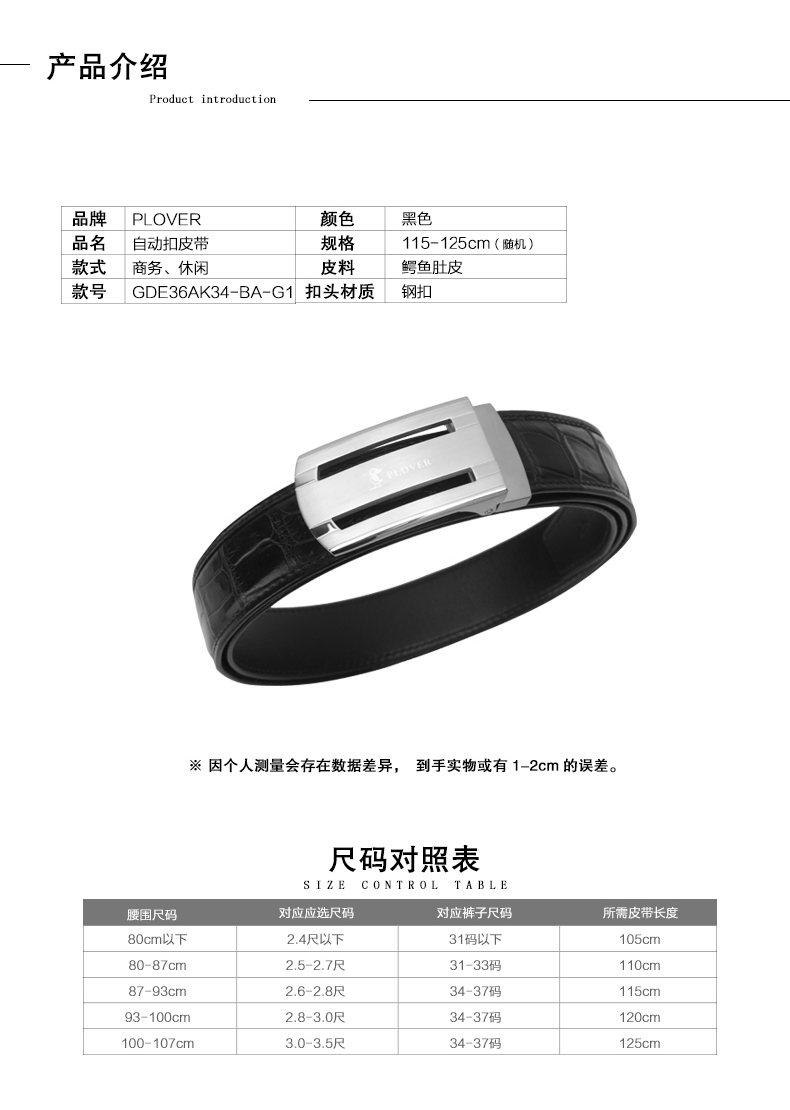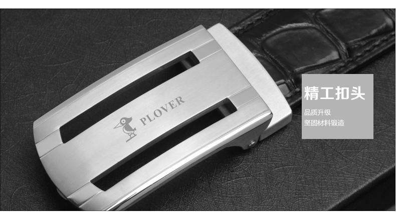 本产品带身面皮采用真鳄鱼肚皮,此皮面磅礴大气,纹理自然饱满,抗拉伸不易变形,底是皮质柔软,耐磨性强的头层平纹皮,此带身手感细腻,质感舒适,且告别老式扣头,搭配新式不锈钢扣,金属感十足,此扣头不但耐高温、抗氧化、且坚固耐用。传统和现货相结合的做工、鳄鱼纹高端皮盒,使本产品突显高大上。