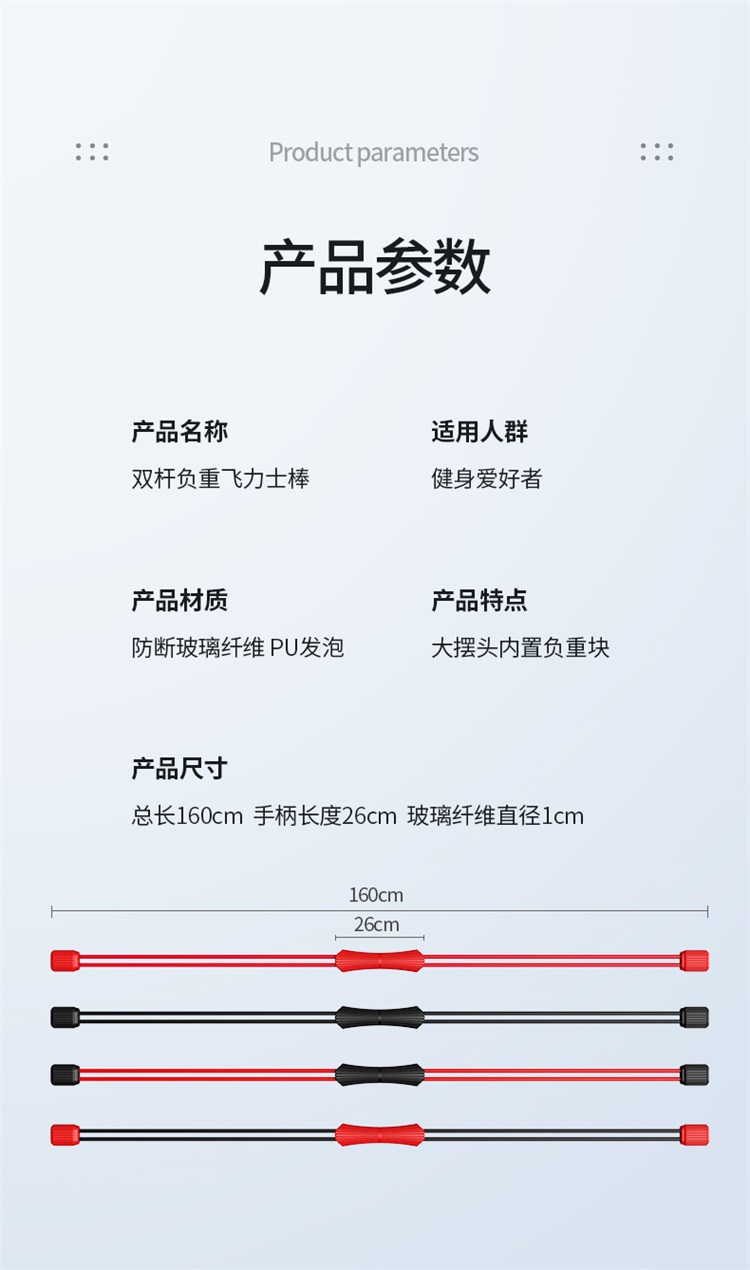 产品尺寸:总长160cm/手柄长度26cm/玻璃纤维直径1cm