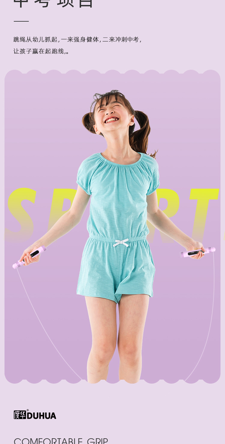 3、一对手柄两种绳行无场地束缚,室外运动选用长绳,自如跳跃,室内运动换上无绳球,可随心跳跃,环保无绳球,协调不绊脚;