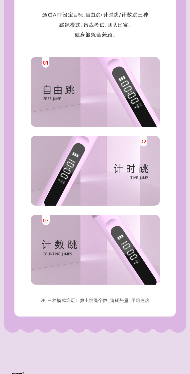 4、自由跳、计时跳、计数跳,目标设定三种模式任你选;