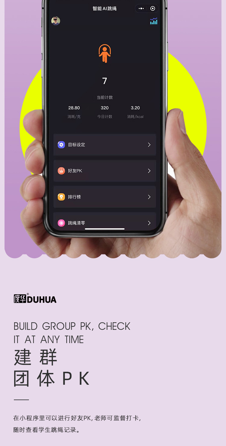 7、智能跳绳适用人群广,儿童、学生考试竞赛,成人健身等均可以。