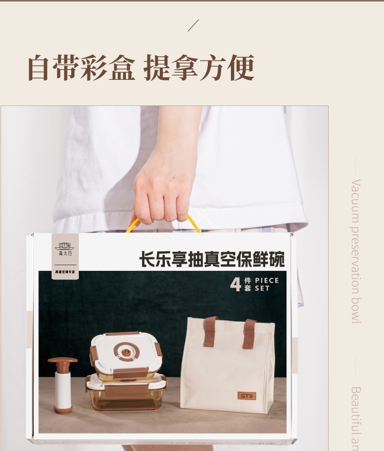 高太白长乐享真空保鲜碗6件套大长1040ml*1+中长640ml*2+小长370ml*2保鲜碗 GBXW022