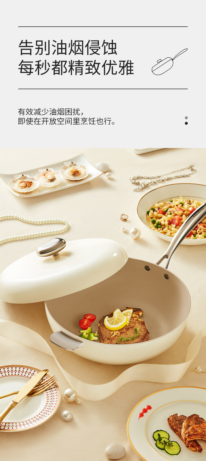 采用悬浮不粘技术,炒菜丝滑,内外不粘。