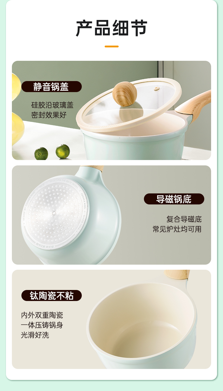 1、有钛陶瓷耐磨不粘健康的宝宝辅食锅。