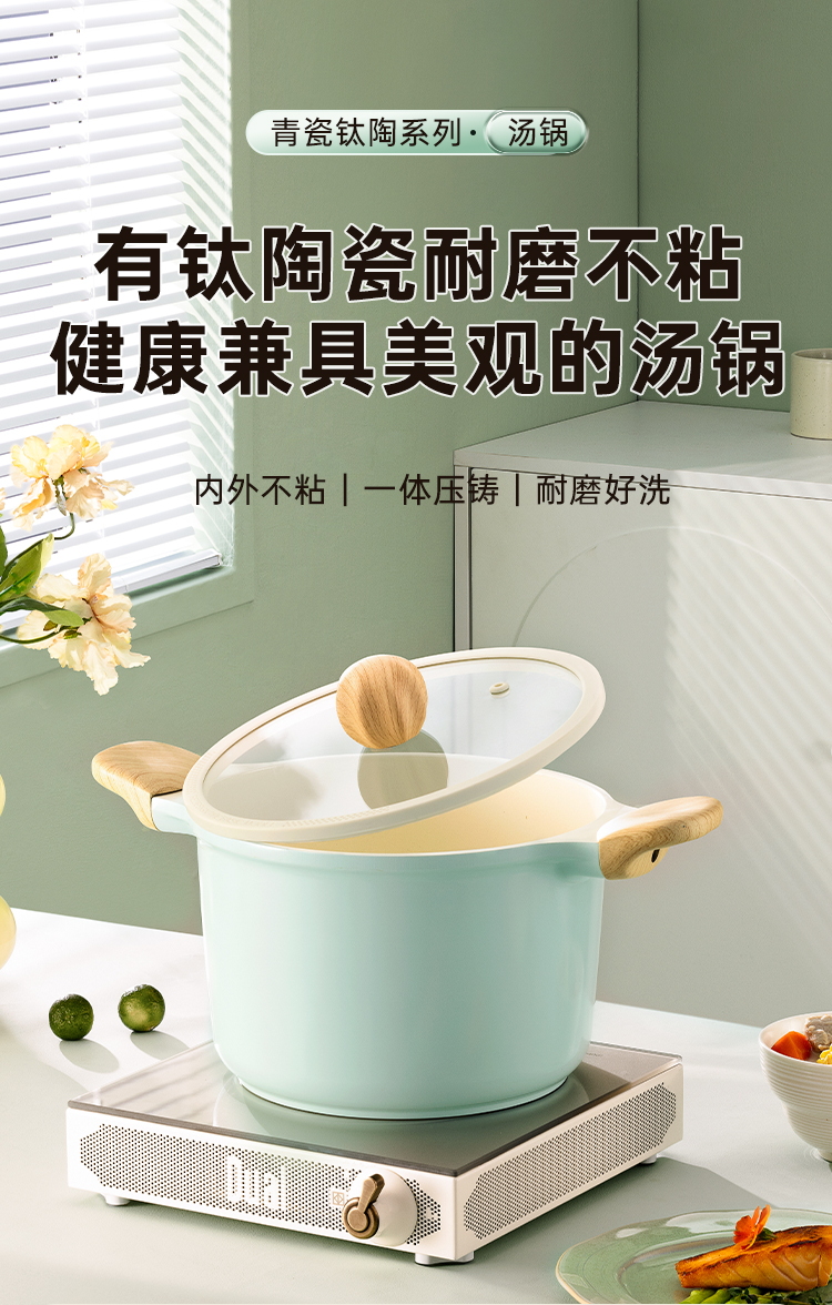 1、有钛陶瓷耐磨不粘健康兼具美观的汤锅,