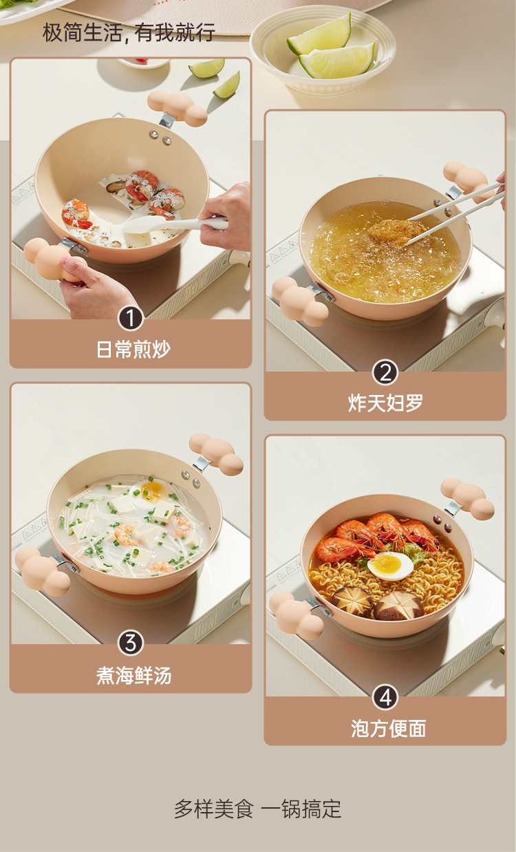 2、1人食小锅,煎炒炖煮炸样样行双耳加持,直接上桌当餐具,餐后少洗一个碗。