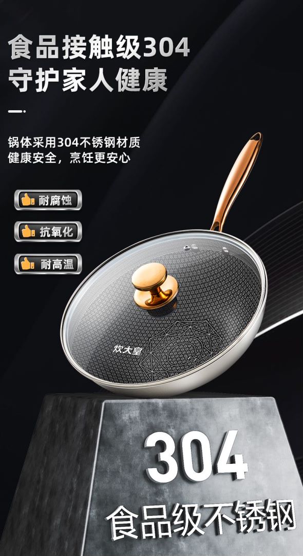 2、锅体采用304不锈钢材质健康安全,烹饪更安心,一锅全能文火武火全兼容。