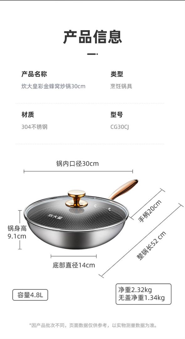 炊大皇彩金蜂窝炒锅30cmCG30CJ