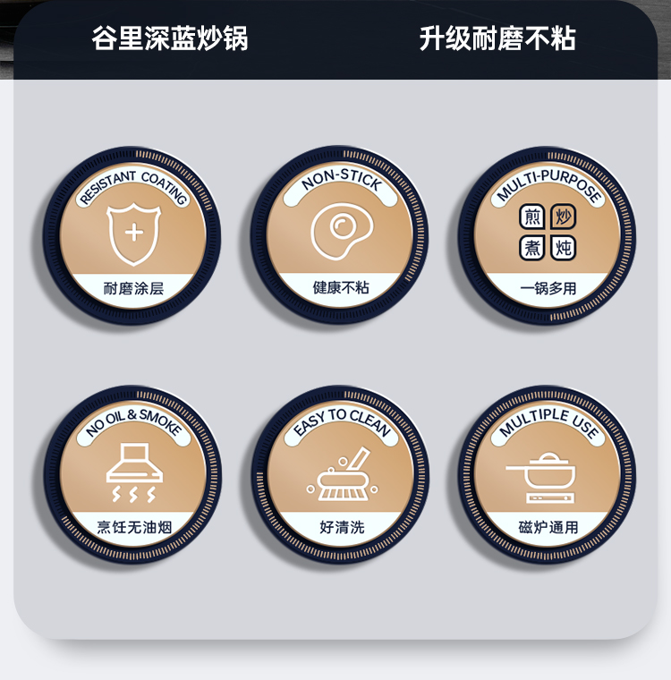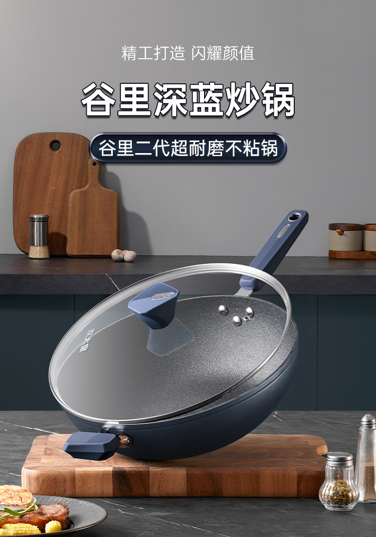 炊大皇谷里深蓝无油烟炒锅34cmSL34CG