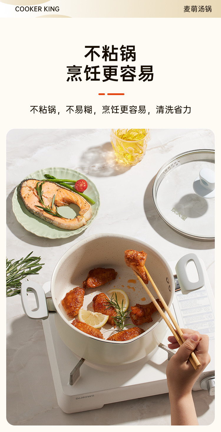 1、高颜值多用小锅上桌秒变精致食器,不粘锅,不易糊,烹饪更容易,清洗省力。