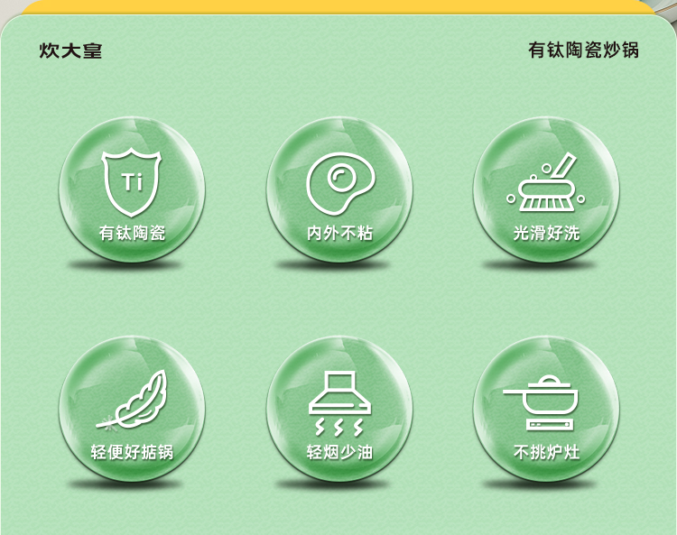 1、钛陶瓷不粘炒锅