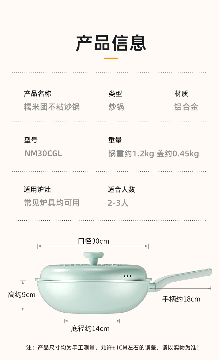 炊大皇糯米团不粘炒锅30cm(绿色)NM30CGL