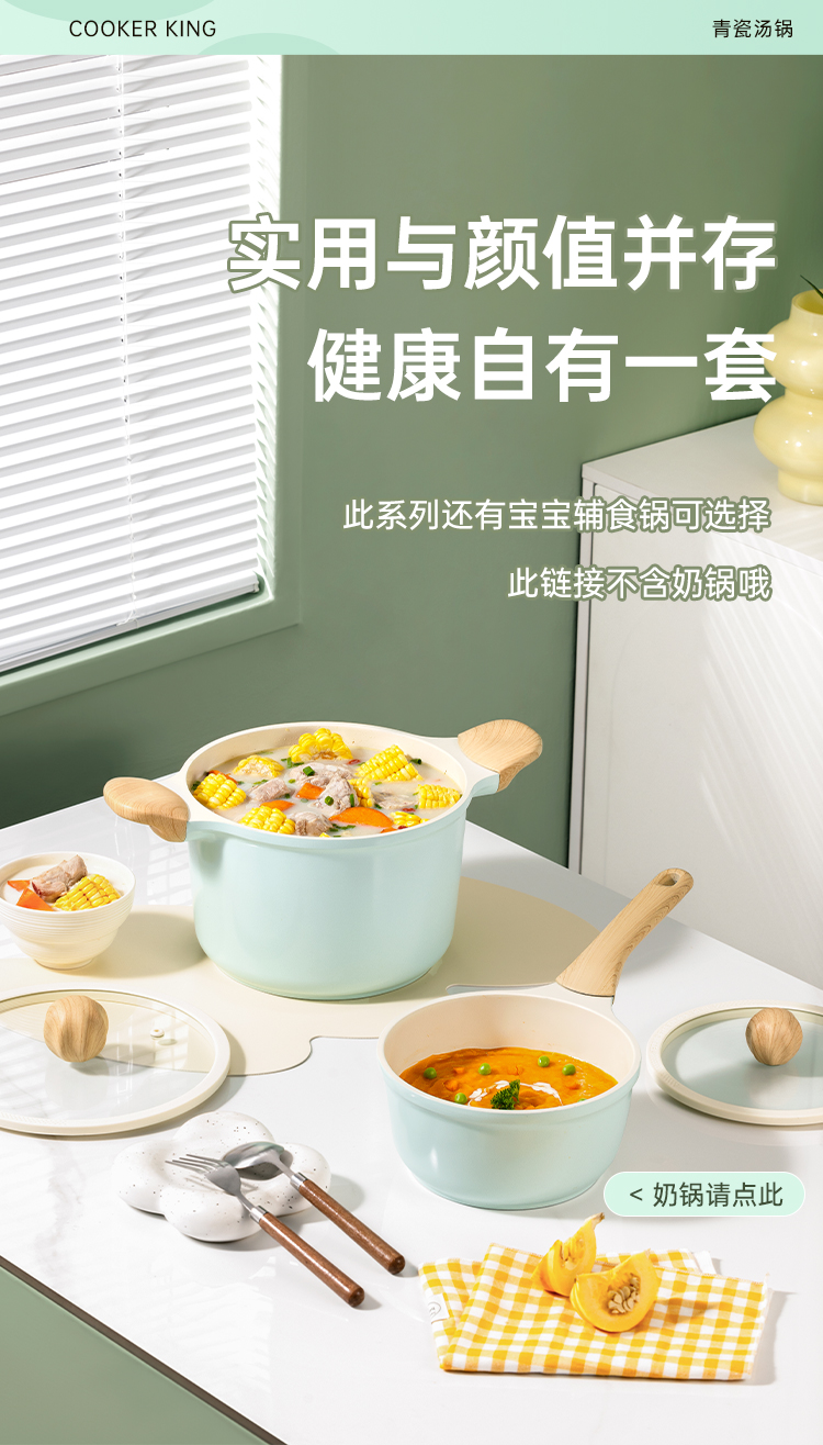 1、有钛陶瓷耐磨不粘健康兼具美观的汤锅,