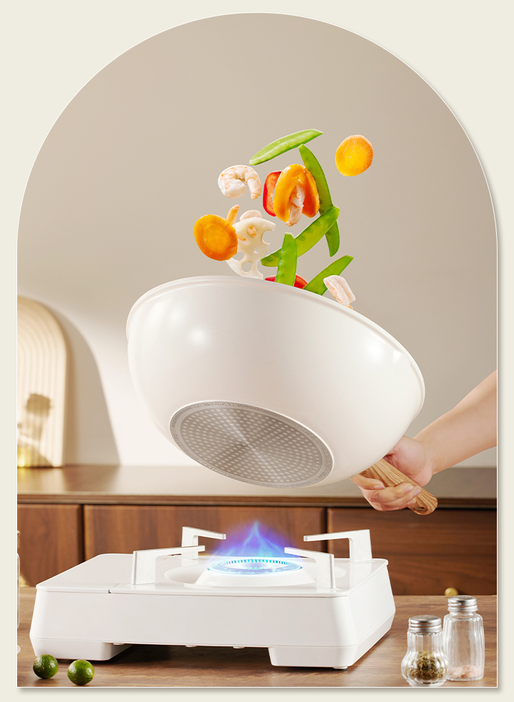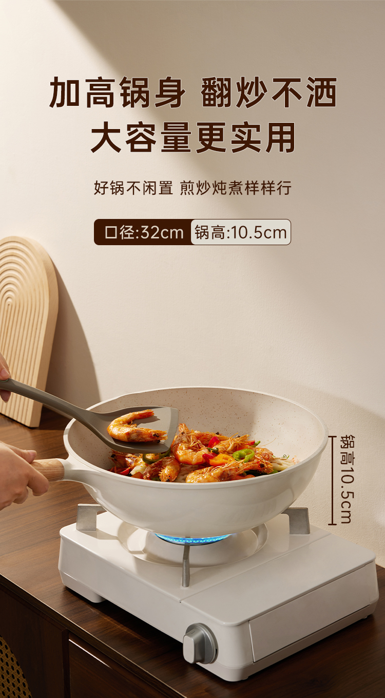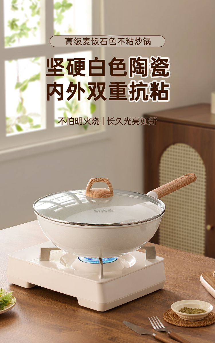 炊大皇高级麦饭石色炒锅32cm(白色)GJ32CGB