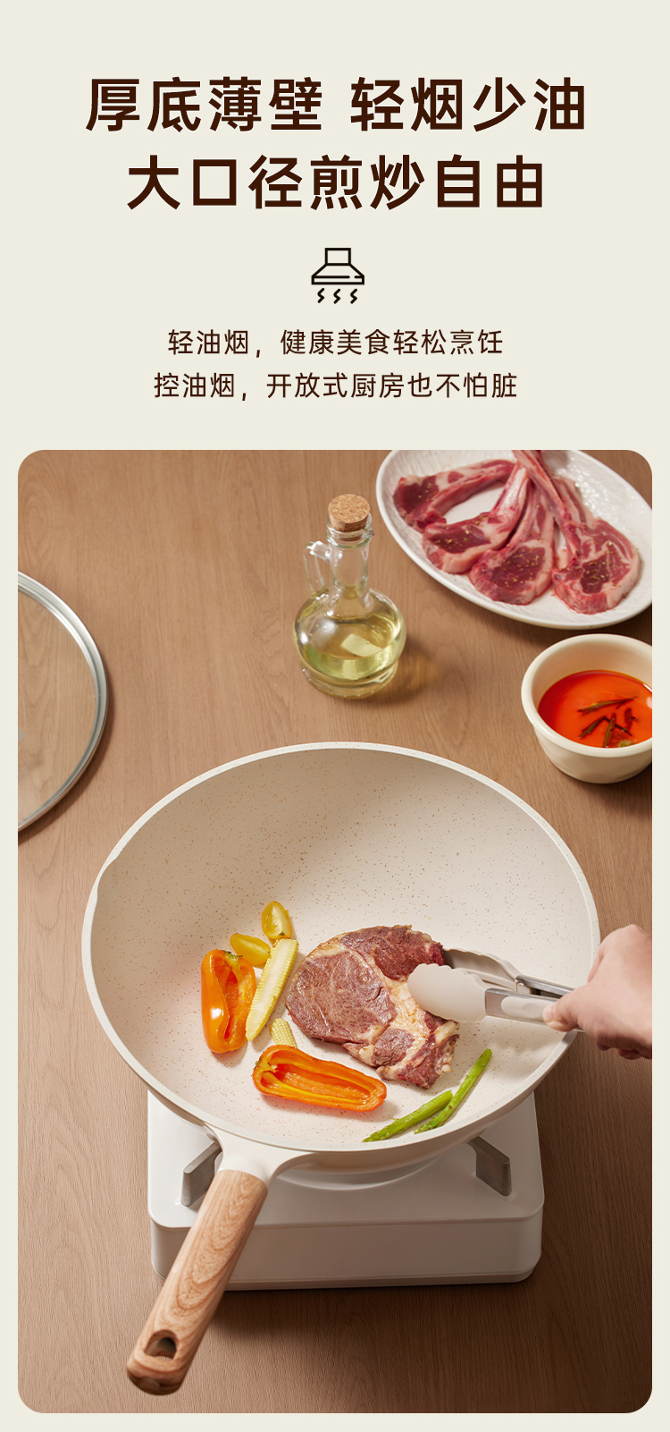 3、大容量 也轻量手感惊艳 掂勺自在,单手掂锅无负担,小指轻松勾起它。