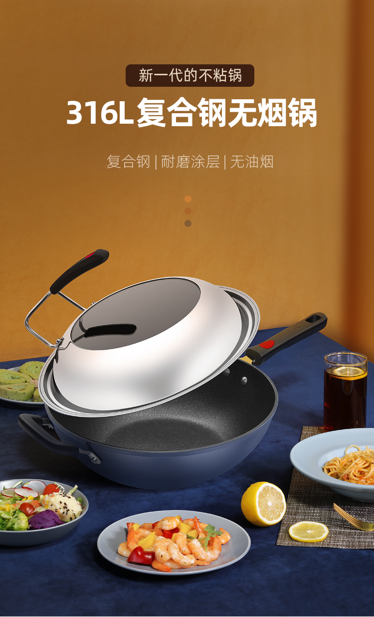 炊大皇新一代316L复合钢无烟炒锅32cmB50335