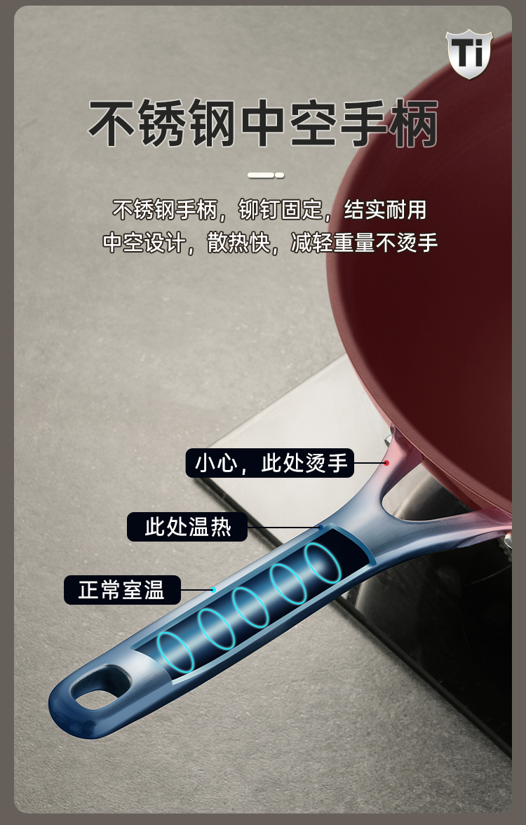 1、0涂层钛健康无重金属|物理不粘纯钛不粘更健康。