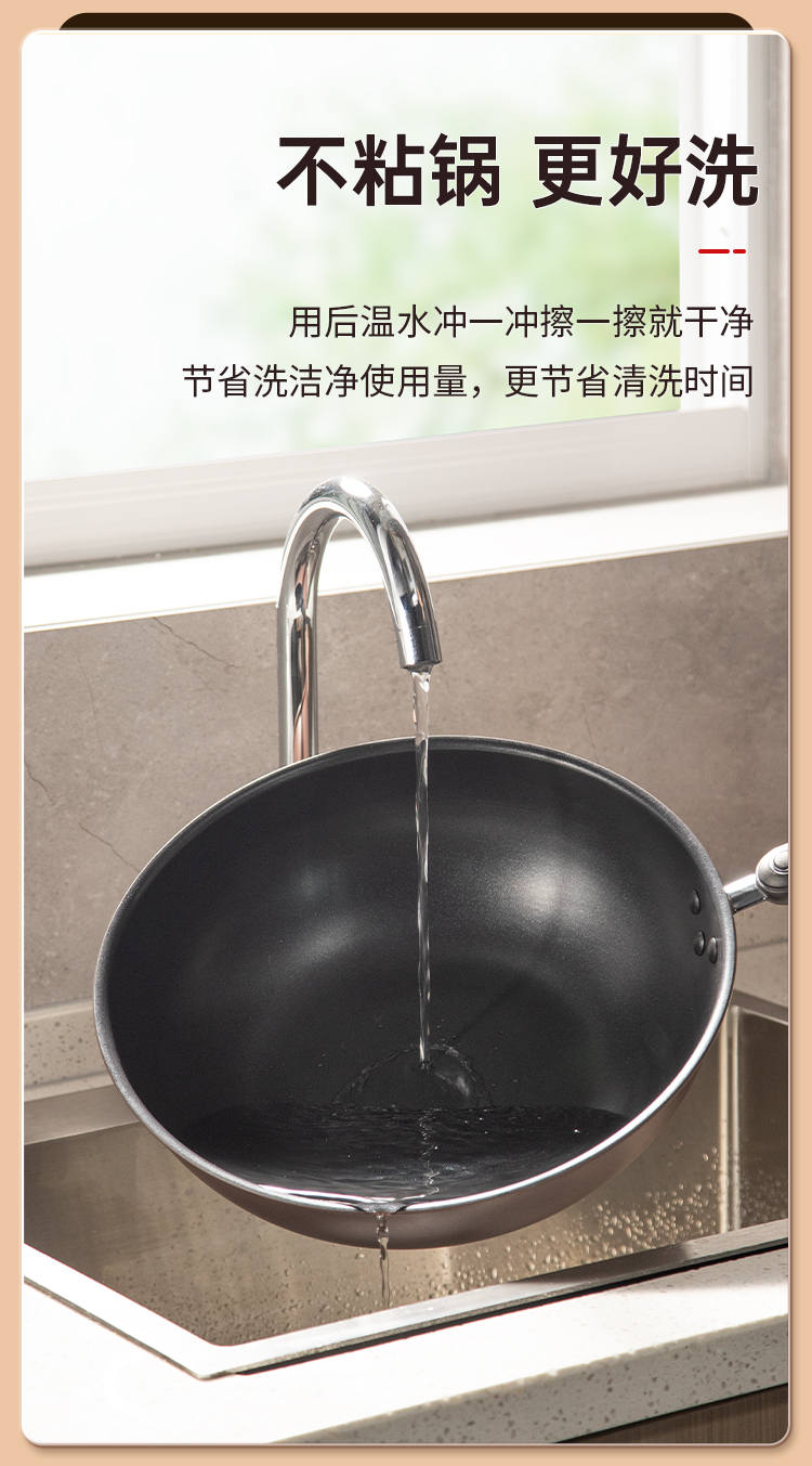 3、复合导磁底锅 导磁导热常见炉灶都可用 换灶不换锅,不粘锅 更好洗。