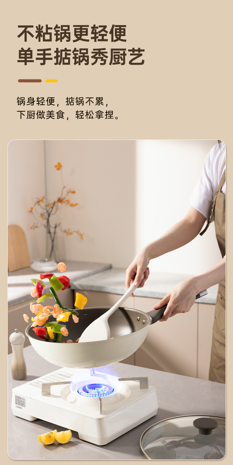 1、健康不粘涂层,纳米喷涂陶瓷外壁耐磨不怕烧久用不发黄,煎饼煎蛋轻松拿捏轻松下厨,省时省心,锅身轻便,掂锅不累下厨做美食,轻松拿捏。
