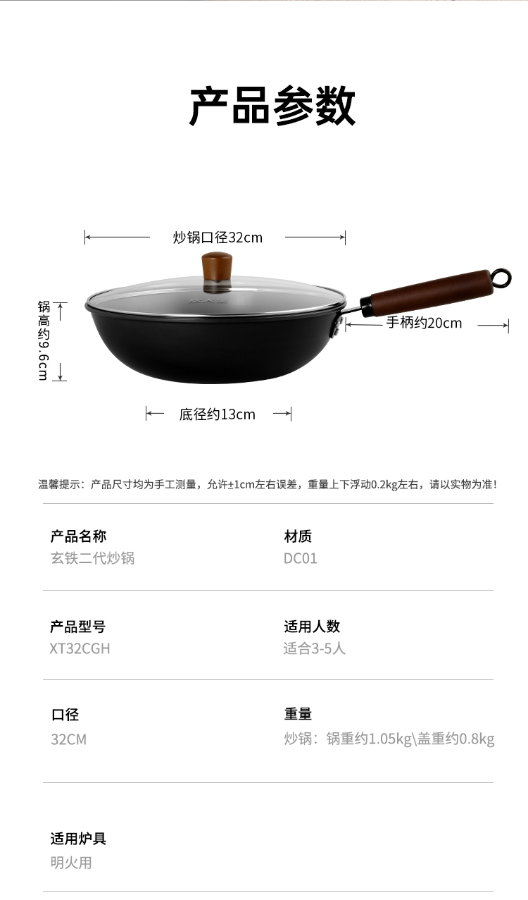 炊大皇玄铁二代炒锅32cmXT32CGH