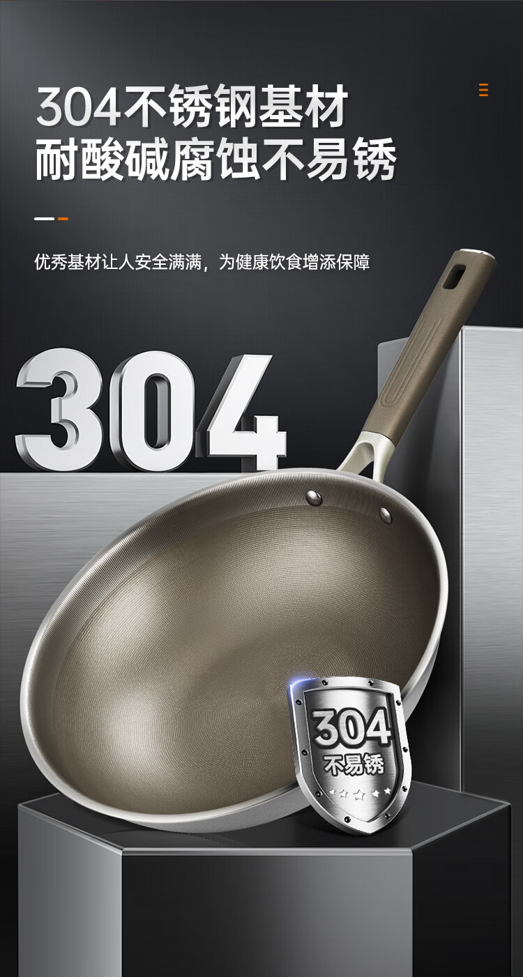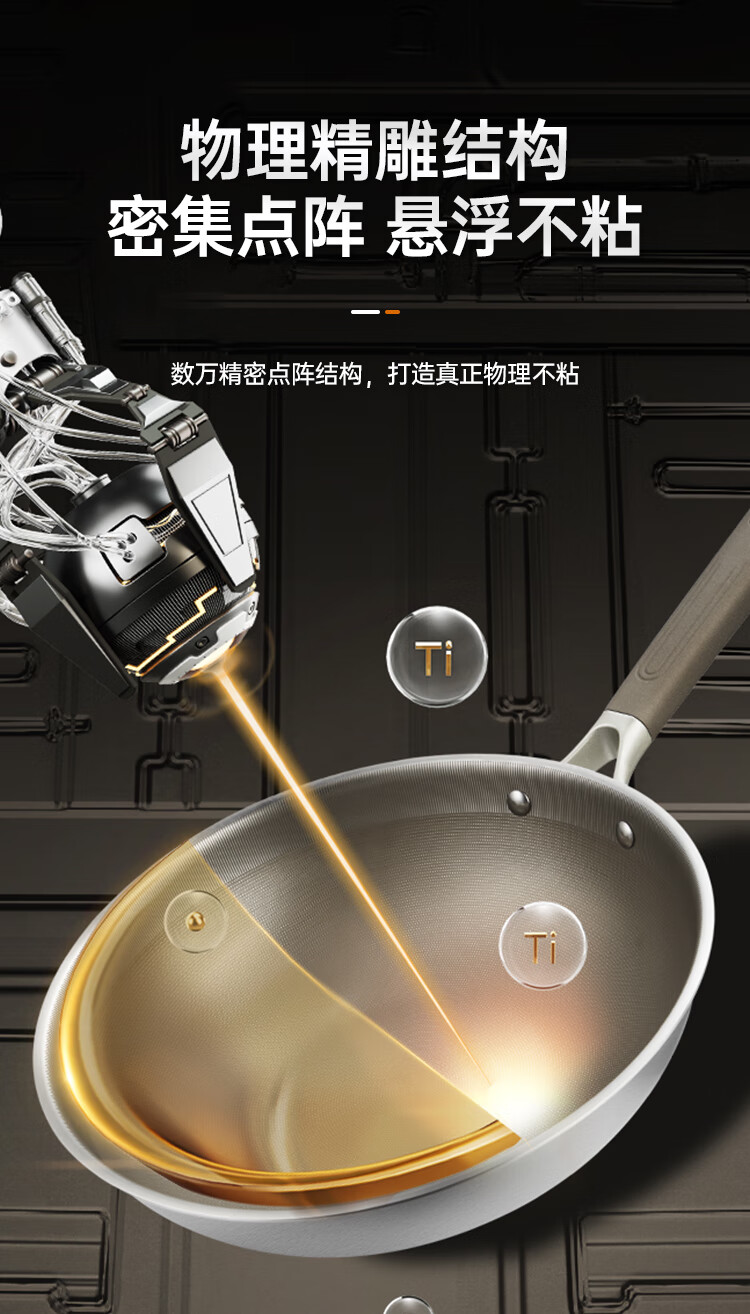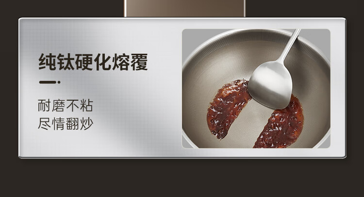 1、纯钛物理不沾无涂层钛金健康不粘锅
