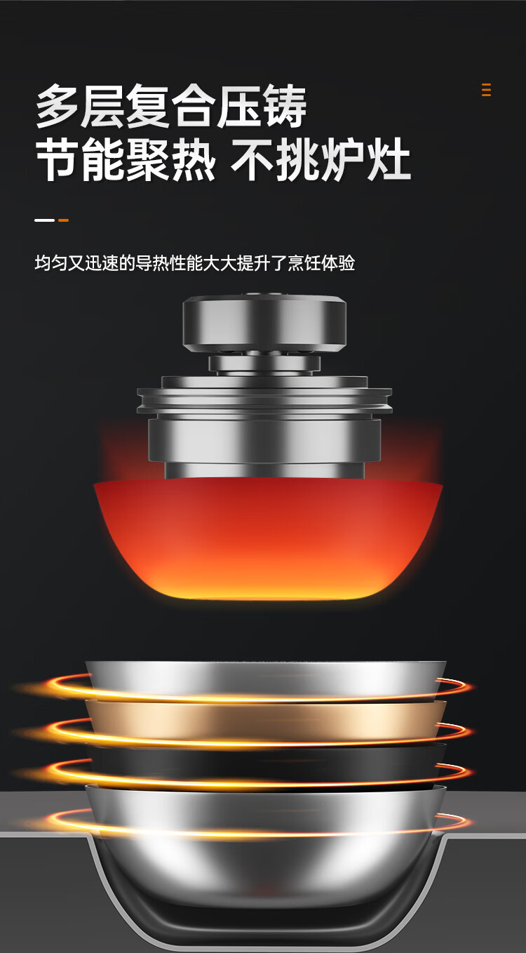 2、适用于电磁炉、燃气灶、电陶炉。电热炉等多种烹饪热源。