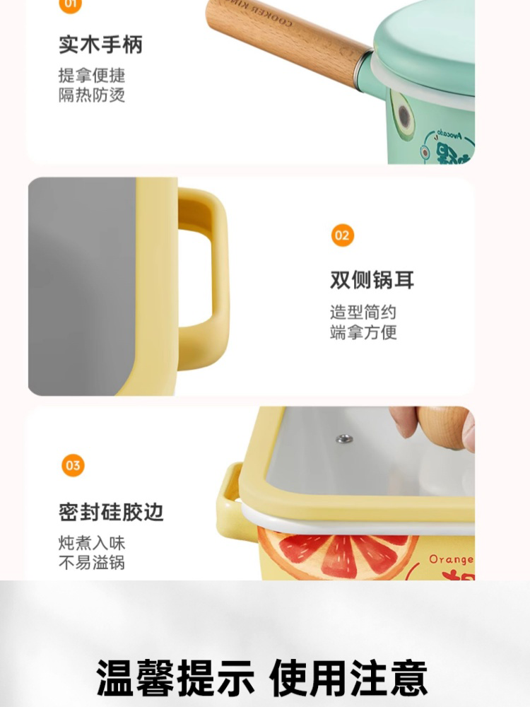 3、内刷不伤锅,外烧不变黑,美锅不娇气,炉灶通用不惧明火、烹饪无小事、细节见匠心。