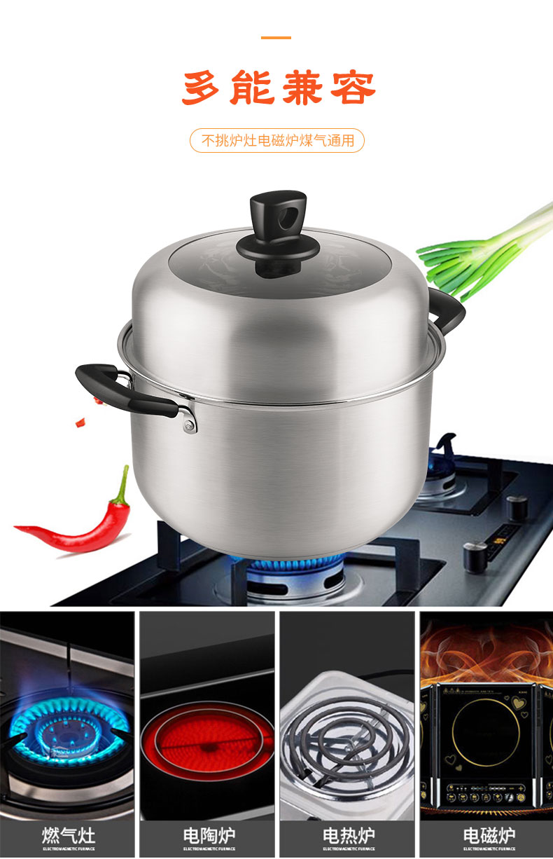 2 加高锅身,加高蒸格,容量升级,更有效防止汤汁溅出;