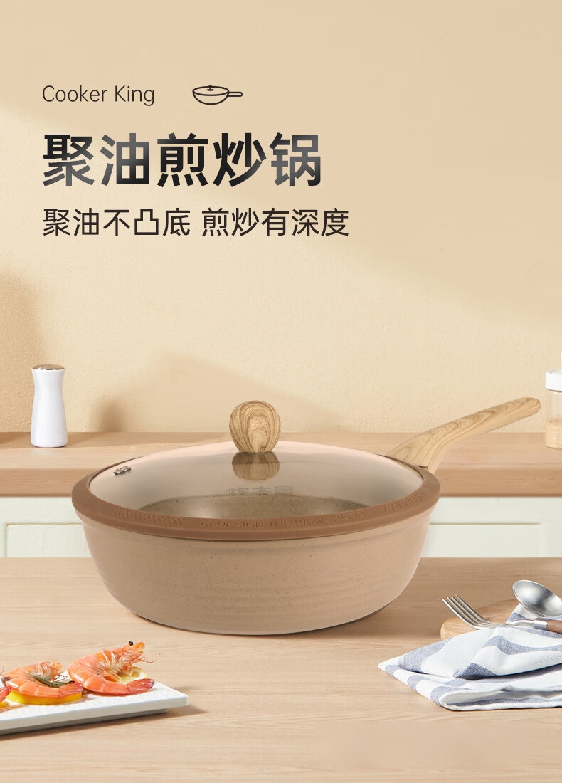 同口径相比,容量增大可煎可炒可煮,食材防飞溅