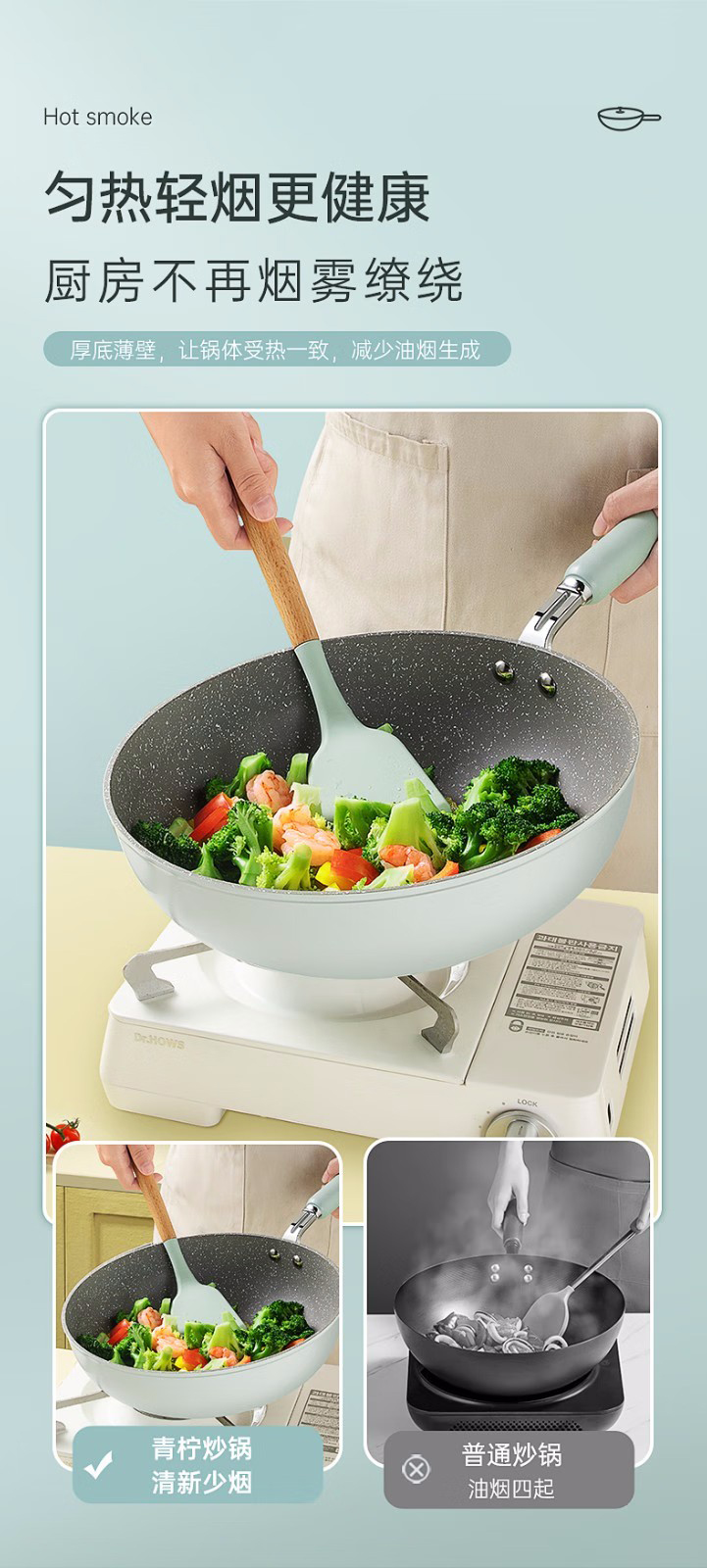2.匀热轻烟更健康厨房不再烟雾缭绕