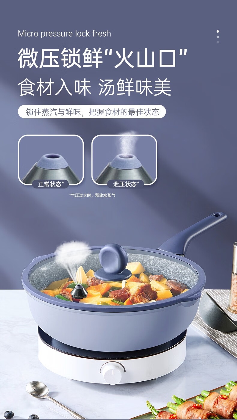 2.烹饪炒煎炖煮都不粘,匀热控油烟下厨清新更健康