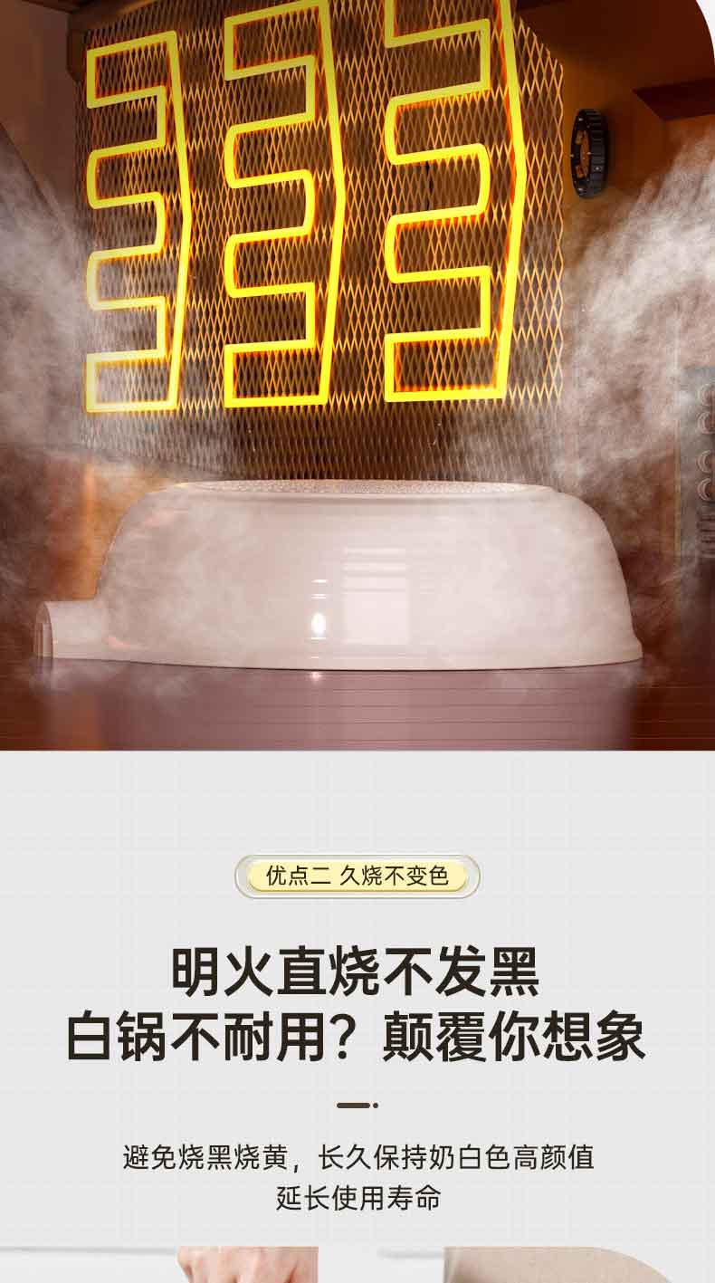 2.久烧不变色,浅色锅也可以很耐用。