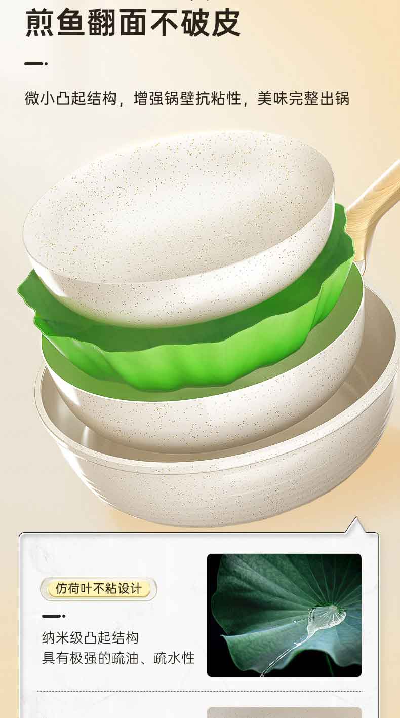 1.防凸升级,倒油不散,锁油防干烧少油即可煎炒。