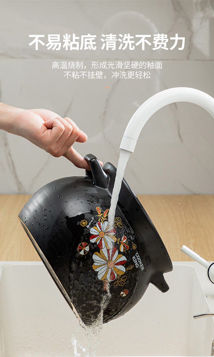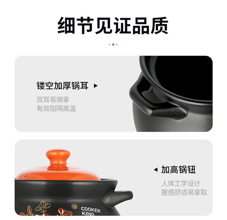 2、材质均来源于大自然,无化学涂层不含铅锅,与食物接触更放心,加高锅沿。