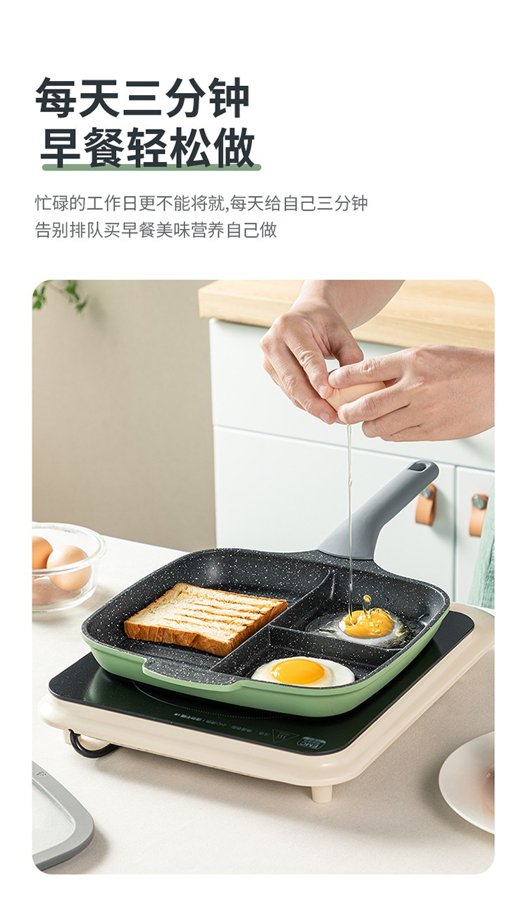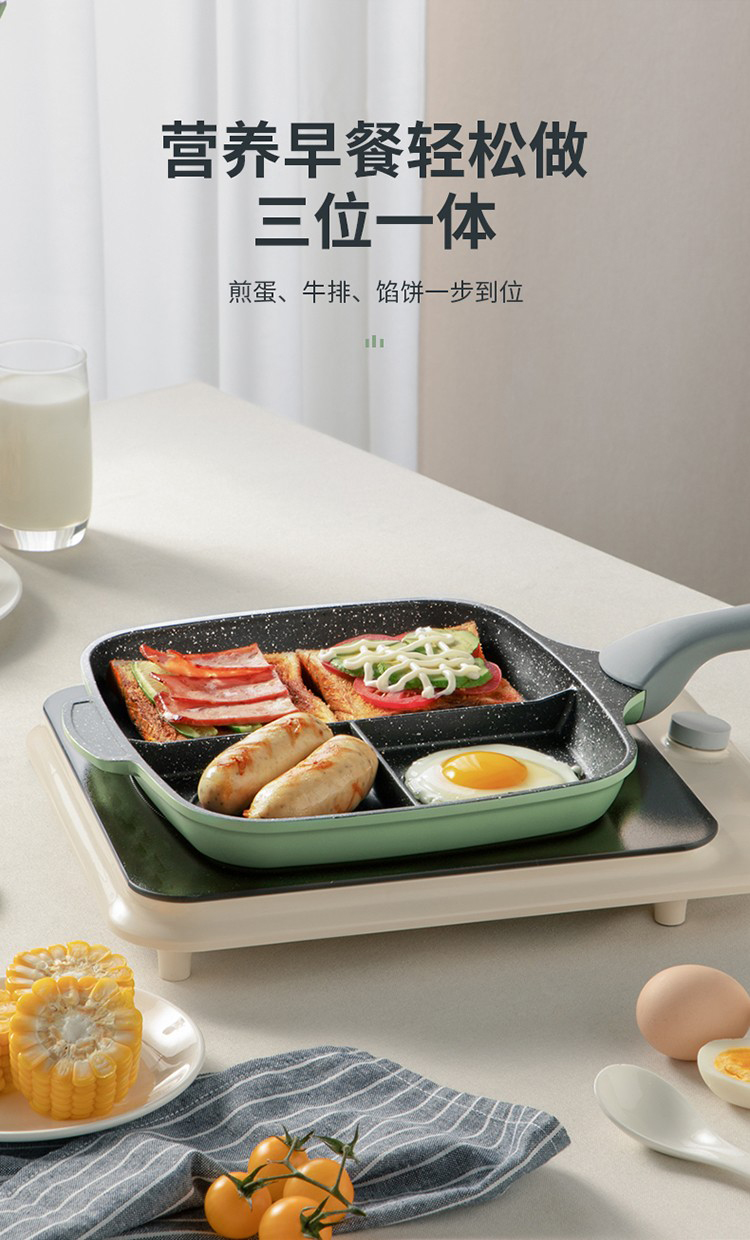 5、三位一体,营养早餐轻松做煎蛋、牛排、馅饼一步到位